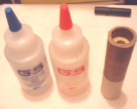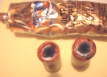 The plastic end of the drilled out Bates grain has Ultra-Copper added at the edges so that when inserted it will make a seal at the nozzle end.