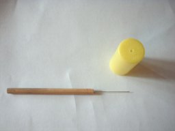 The melted propellant is poured into the yellow cap making sure to eliminate any bubbles and make complete contact to the inside of the cap. The needle end of the coring rod is inserted and fish around center bottom till the tiny hole is found.