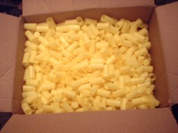 The solution to these problems came in the form of autoclavable (ie heat resistant) plastic test tube caps. These are K-16 caps available from Bellco. They measure 38mm long, 19.5mm O.D. 18mm I.D. so give a slightly progressive "Bates" grain.