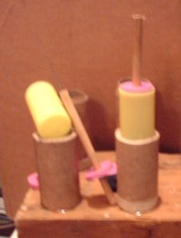A casting rack is made by gluing some paper casing tube sections to a board.