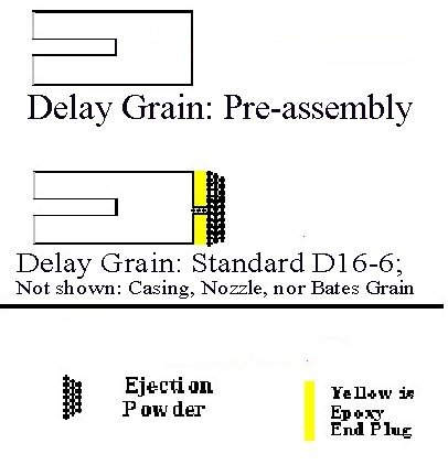 The difference in construction is the cap end is not drilled. The coring dowel only goes deep enough to allow the remaining propellant to act as a delay grain. I also add a plumbing washer that stays with the grain.