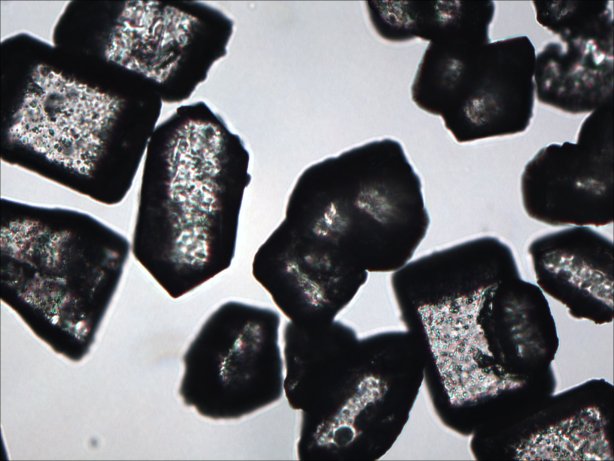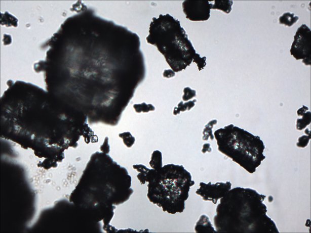 The majority of the KNO3 crystals measured 20 microns to 200 microns