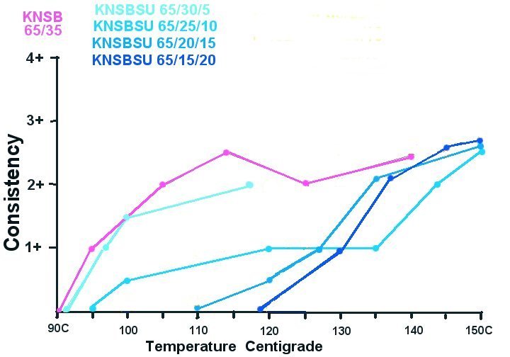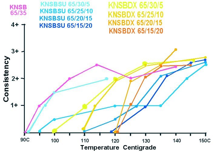 KNSB vs KNSBSU vs KNSBDX Alloys; Temperature vs Consistency: