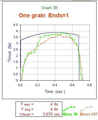 Like the "two" (1.5) grain motor (my standard D16 motor) the second half of the static burn is not as progressive as the sim.