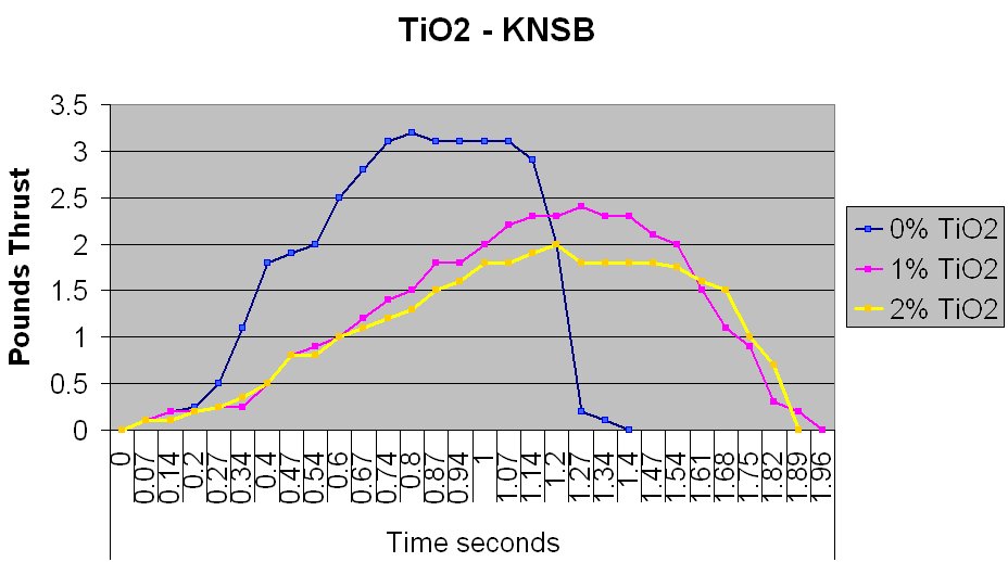 The apparent 4% "loss" of ISP in the 1%TiO2 is within the statistical variation (~10%) of these motors so may mean nothing. Would have to do a bunch of tests to see if this is a true loss. Doesn't seem worth all that effort to check.
