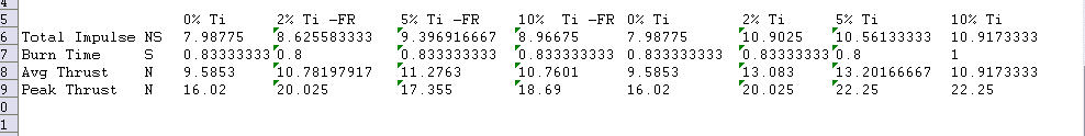 It looks like the fuel balanced 10% Ti has a lower average thrust but this is due to a slow build up of pressure/thrust at the beginning of the burn.